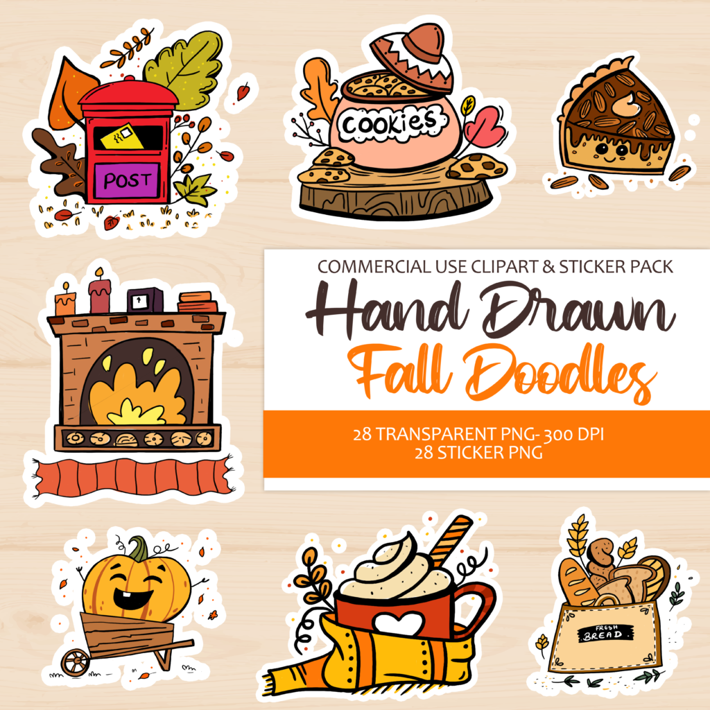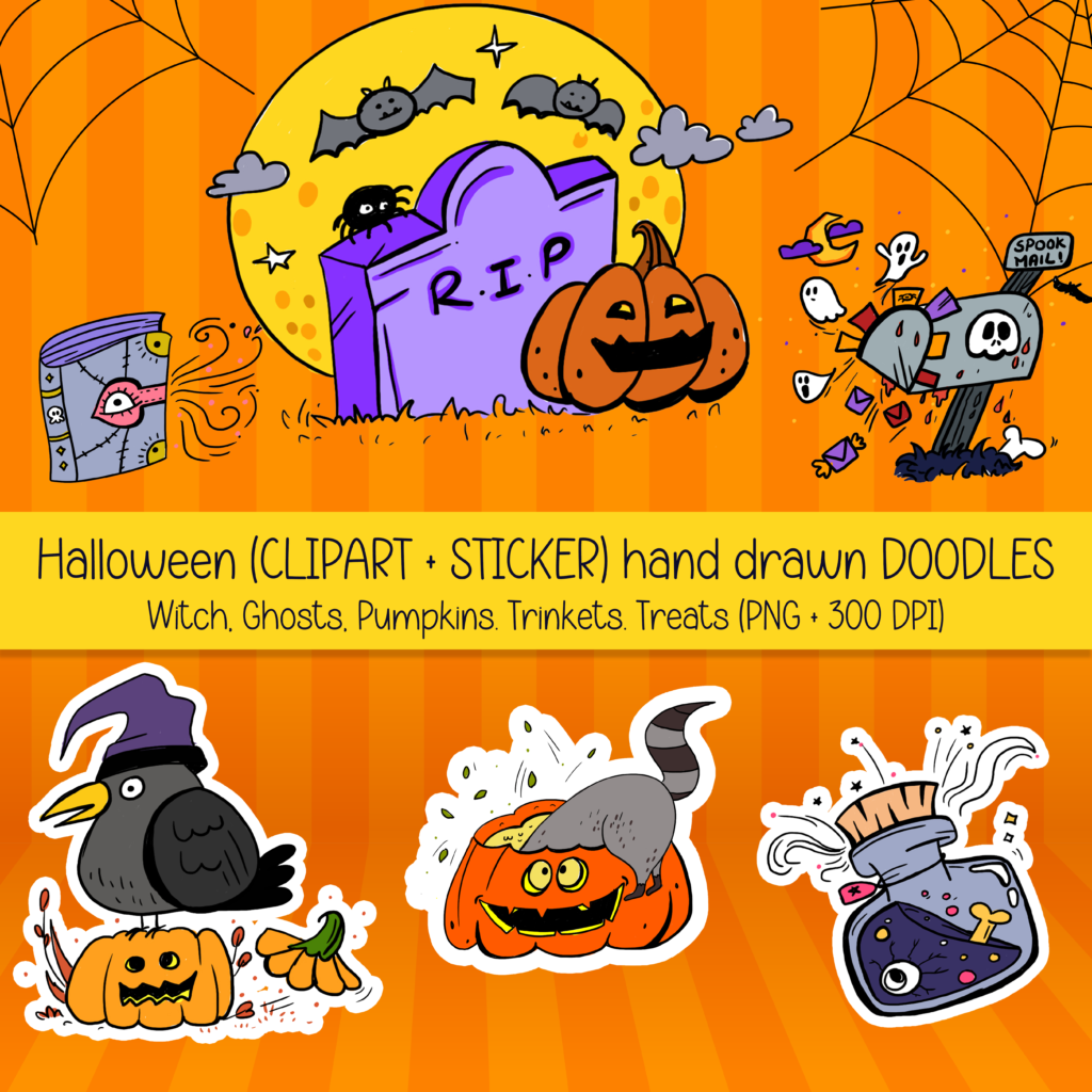 Halloween Doodles (Stickers + Clipart)
